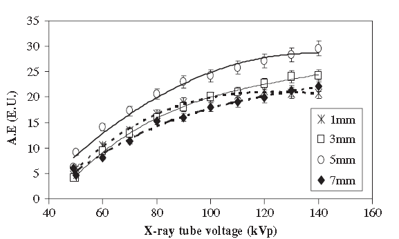[參考文獻1]絕對發光效率,這是在X射線成像(40–140 kV)和乳房X線照片成像(22–49 kV)中使用的各種X射線能量中通過實驗確定的。使用以下設備通過X射線對晶體進行輻照:(i)具有鎢陽極靶和2mm Al濾光片的飛利浦X射線裝置和(ii)帶有鉬陽極靶和鉬濾光片的通用電子Senographer DMR X射線乳腺攝影裝置,使用前面描述的實驗裝置,對晶體進行X射線輻照。